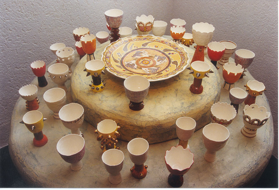Porcelain, overglaze painting, styrofoam, wood.