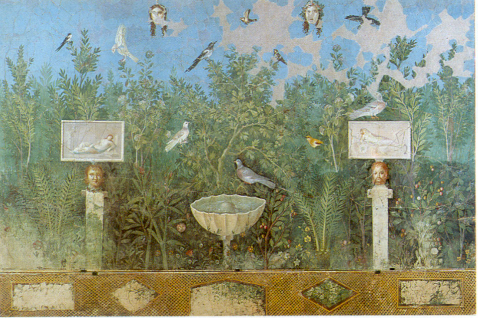 5. Roman garden. Wall painting in Pompeii.