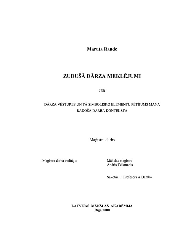 1. One of the Gardens, I, Maruta Raude. 1997.